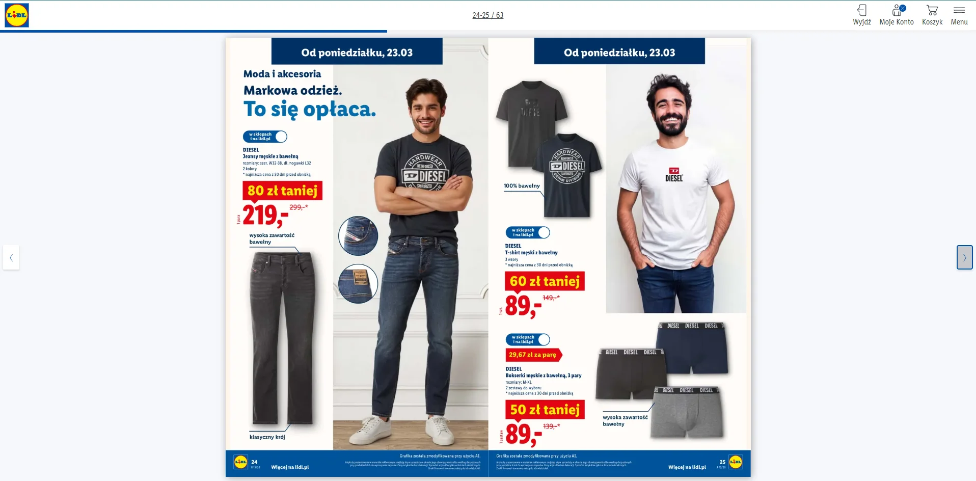 Proroczo napisałem w poprzednim wpisie o najnowszym filmie reklamowy Diesla, że scenę grillowania na trawniku wzięli z gazetki Lidla. I bum!, w najnowszej gazetce z mojego lokalnego dyskontu informacja, że od najbliższego poniedziałku, tuż obok Esmary, marki własnej Lidla, będzie leżeć właśnie Diesel. I nie tylko bielizna i tshirty, bo to gadżety. Nie, będzie tam ikoniczny produkt, czyli dżinsy! Za dwie stówki - czyli niemalże za darmo. W jakości zapewne adekwatnej do ceny, określonej etykietą “wysoka zawartość bawełny”, czyli może 98, a może tylko 64%, dowiemy się w poniedziałek, bo reszta to?… pewnie król tej dekady, poliester! Branża modowa owija nas w plastik, bo im tanio. My kupujemy, bo nam tanio. A potem siup do pralki i setki tysięcy mikrowłókien plastiku leci po każdym praniu do ścieku i dalej, w morza i oceany. Ile dokładnie z 6kg prania?